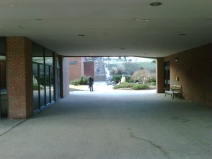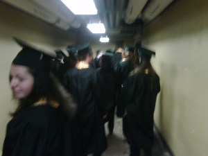 At about 9:45, we began moving, and I expected that we would have to go outside. Not so! I had no idea that there was a tunnel connecting the basement of Sondheim Hall with the RAC, but there it was. I felt like I had been granted some secret knowledge because of my status as a graduate.