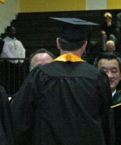 After everyone had been called, Dr. Hrabowski spoke for just a few more minutes, admonishing us to savor these moments, as it “doesn’t get any better than this.” After this, we stood and sang the Alma Mater and then the administration, faculty and finally we, processed out, in our case back through the tunnel to Sondheim.