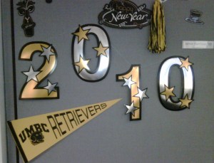 Yesterday was Winter Commencement at UMBC; in a bit, I’ll give you a window into my experiences there. But first, I want to back up a little bit, because I need to make mention of one of the neat perks of graduating: people are very happy for you, and glad to show it. For the past few months, I’ve had the pleasure of hearing congratulations from many family and friends, and getting nice surprises, such as what was waiting for me Tuesday inside my office: